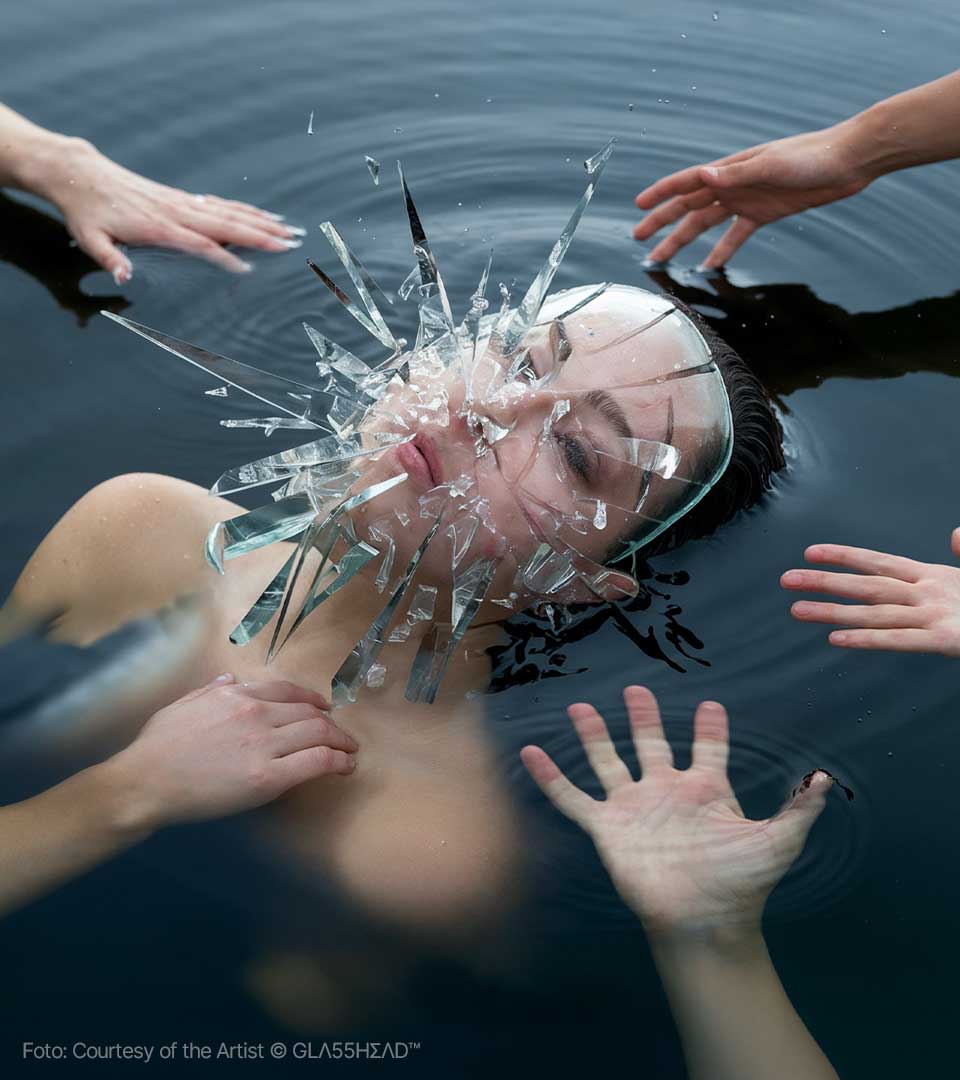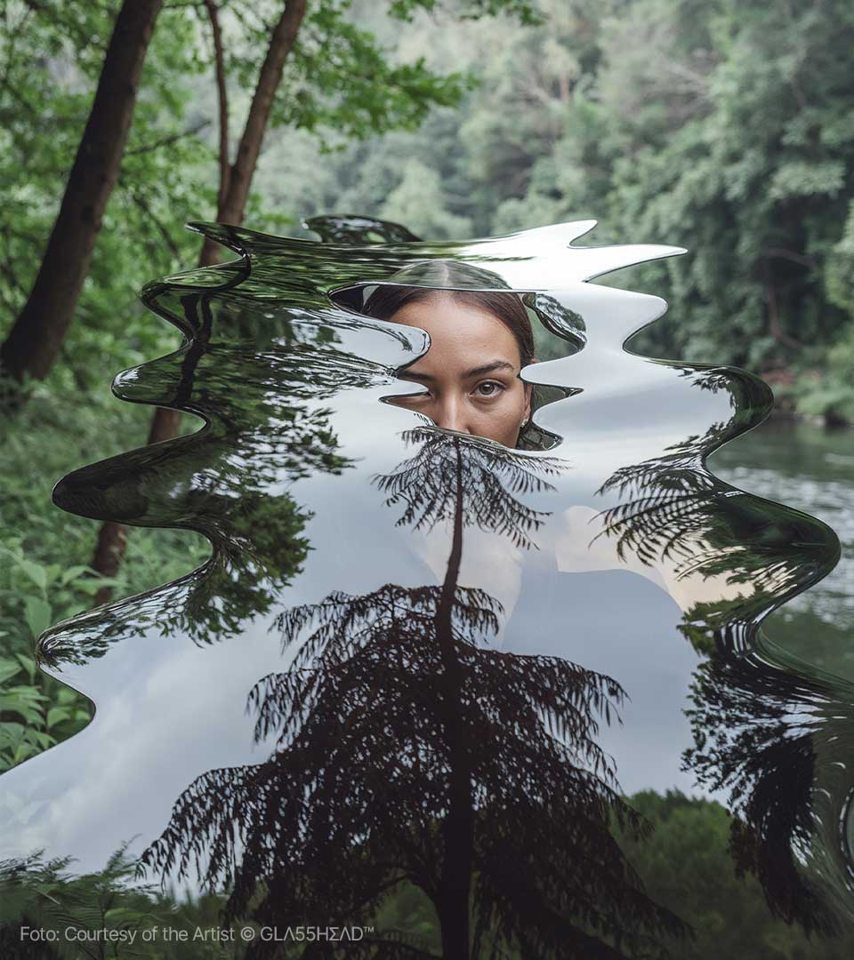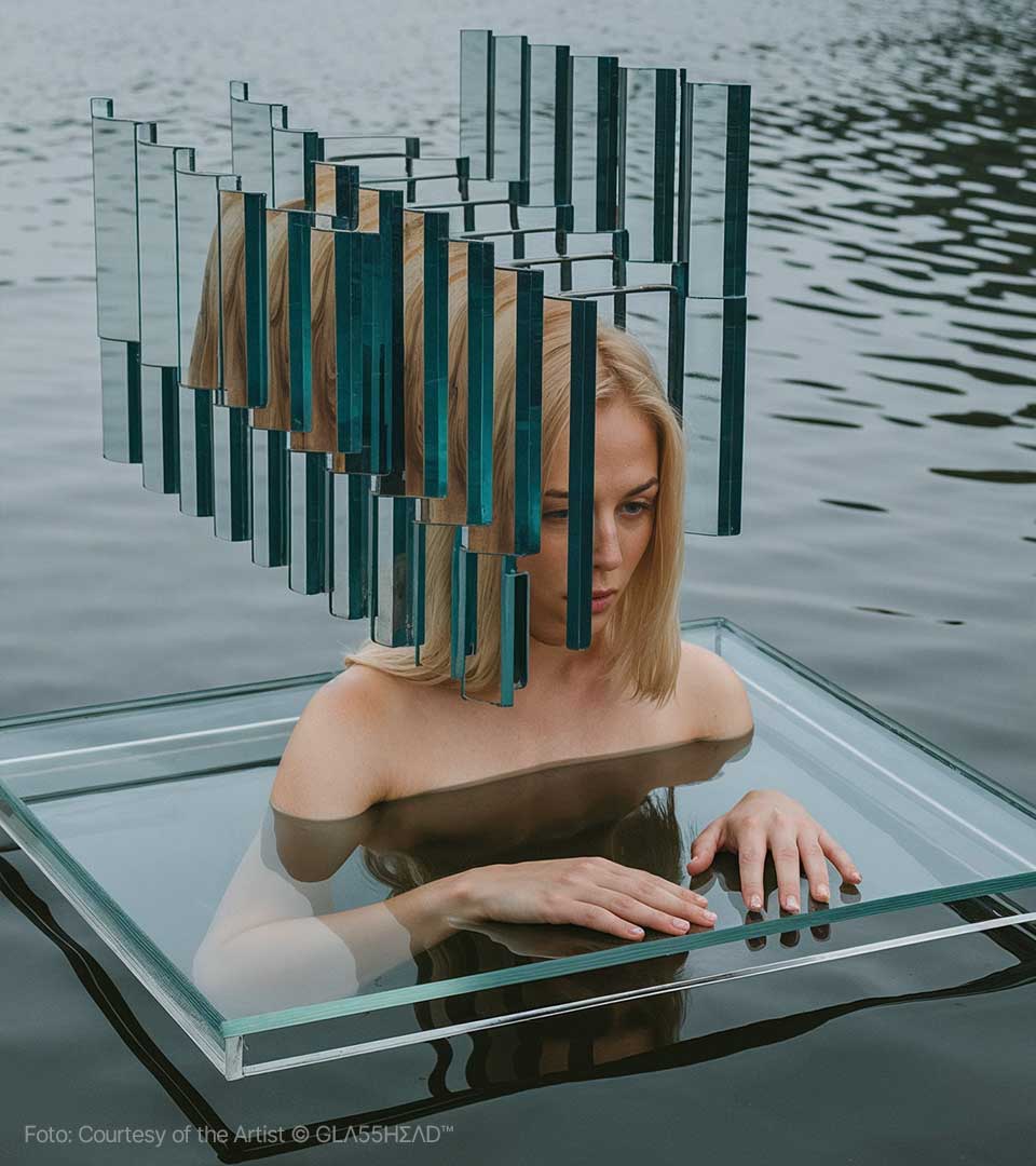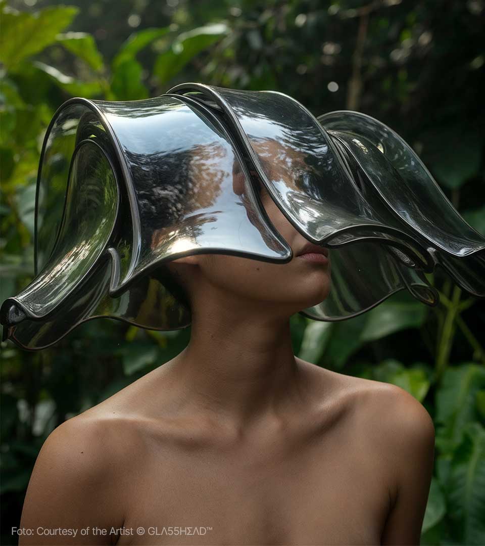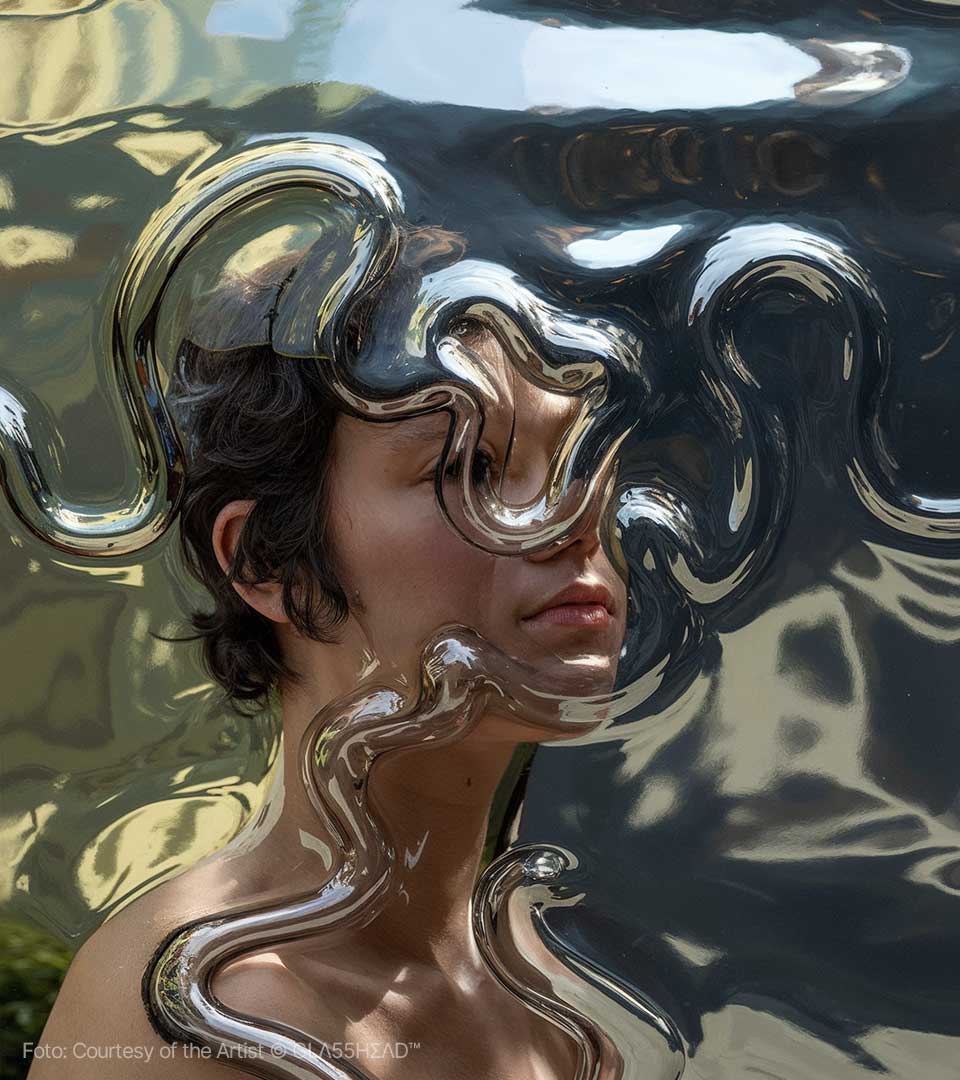 Dietro questo moniker, che sembra evocare un segreto sussurrato tra i pixel, si cela Maciej Tarnowski, l’artista polacco che sta trasformando l’Intelligenza Artificiale in un materiale duttile, fragile e profondo come il cristallo più puro. Se cercate l’epicentro della nuova estetica digitale, dovete guardare verso la Polonia, dove Tarnowski ha stabilito il suo quartier generale creativo, ma definirlo un artista locale sarebbe un errore imperdonabile. Maciej è un vero nomade della visione, un pioniere che ha saputo portare il suo linguaggio visivo —unico e inconfondibile— attraverso i cinque continenti. Da Danzica a Bogotà, passando per i palchi tech di Milano e le gallerie d’avanguardia di Barcellona, GLΛ55HΣΛD™ è diventato sinonimo di un’eleganza iper-tecnologica che non rinuncia mai all’anima.