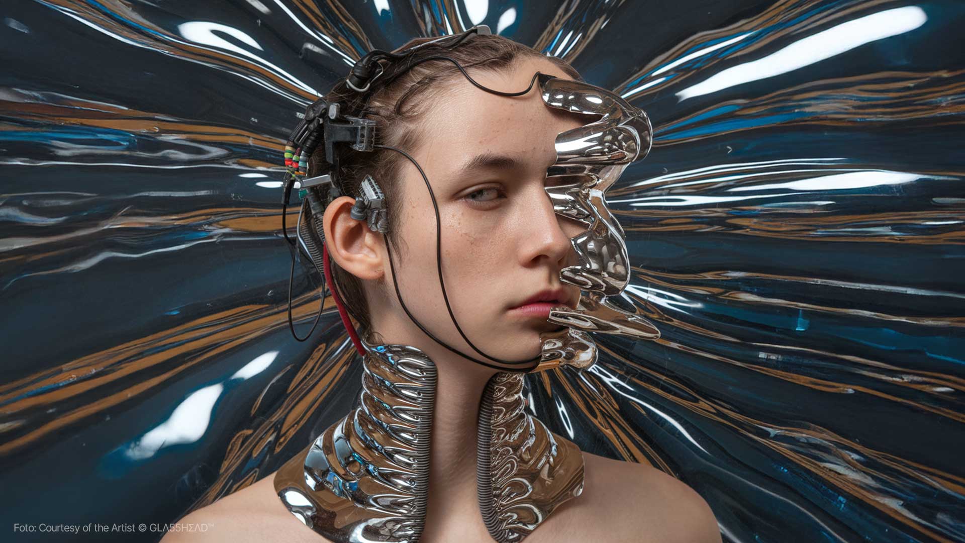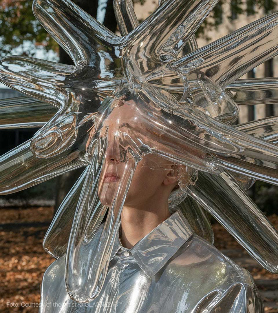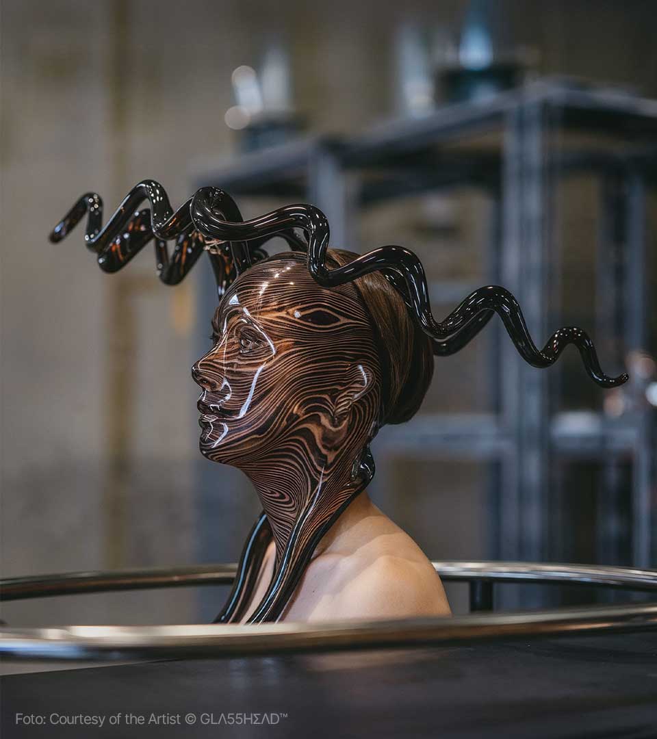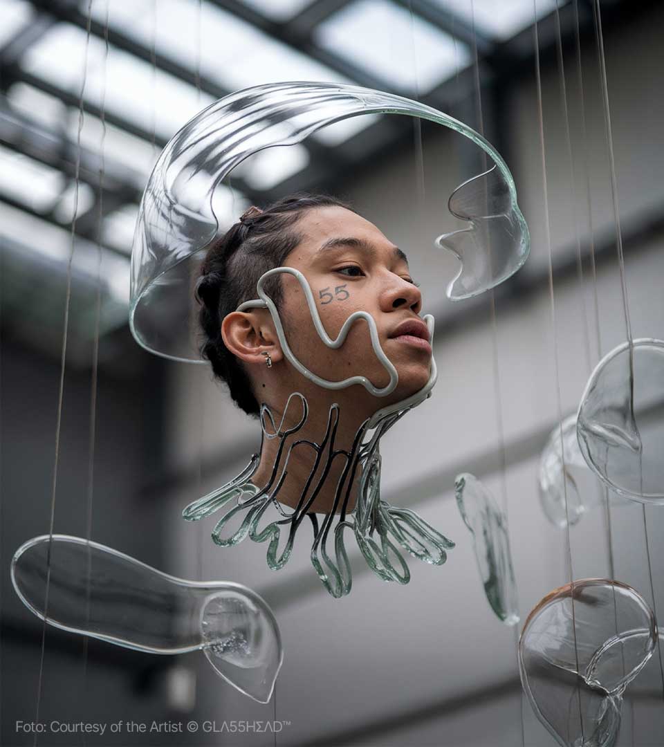 Dietro questo moniker, che sembra evocare un segreto sussurrato tra i pixel, si cela Maciej Tarnowski, l’artista polacco che sta trasformando l’Intelligenza Artificiale in un materiale duttile, fragile e profondo come il cristallo più puro. Se cercate l’epicentro della nuova estetica digitale, dovete guardare verso la Polonia, dove Tarnowski ha stabilito il suo quartier generale creativo, ma definirlo un artista locale sarebbe un errore imperdonabile. Maciej è un vero nomade della visione, un pioniere che ha saputo portare il suo linguaggio visivo —unico e inconfondibile— attraverso i cinque continenti. Da Danzica a Bogotà, passando per i palchi tech di Milano e le gallerie d’avanguardia di Barcellona, GLΛ55HΣΛD™ è diventato sinonimo di un’eleganza iper-tecnologica che non rinuncia mai all’anima.
