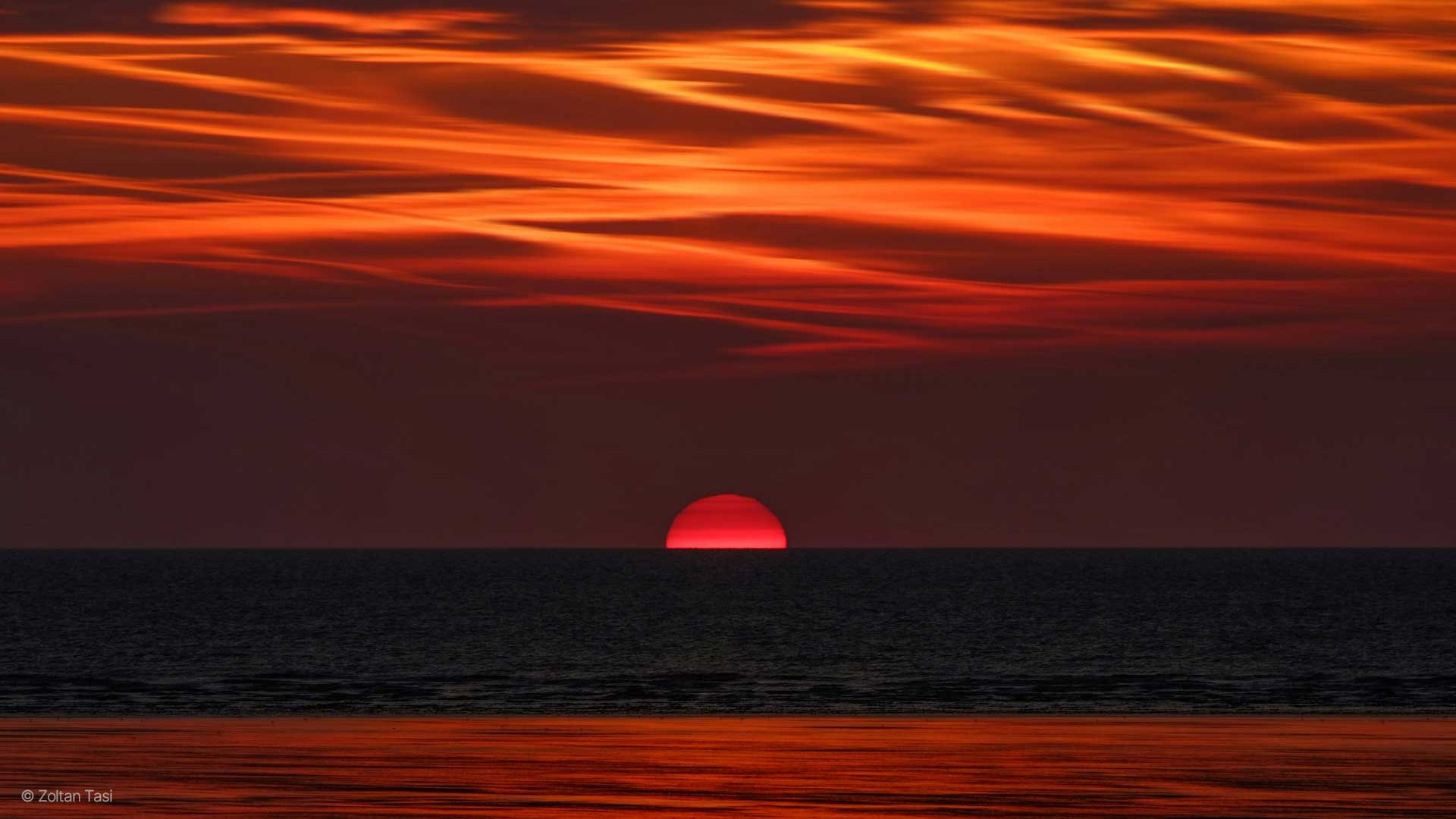 Durante questa maratona, quasi tutta la luce blu e verde viene dispersa e filtrata via, scomparendo nel vasto orizzonte.